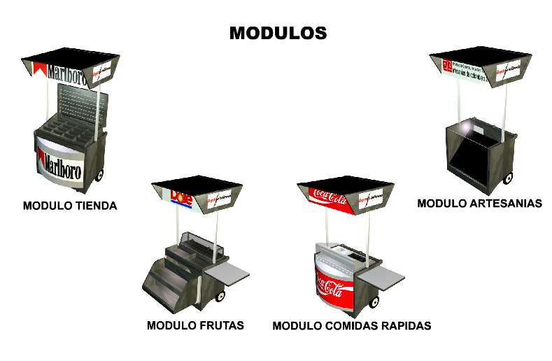 Desarrollados especialmente para ventas informales y tienen una gran aplicación especialmente en el llamado Plan Maestro para el espacio público, donde se busca ofrecer oportunidad de trabajo digno a miles de vendedores ambulantes que quieren ingresar a la formalidad, aprovechando el apoyo de la Alcaldía.
